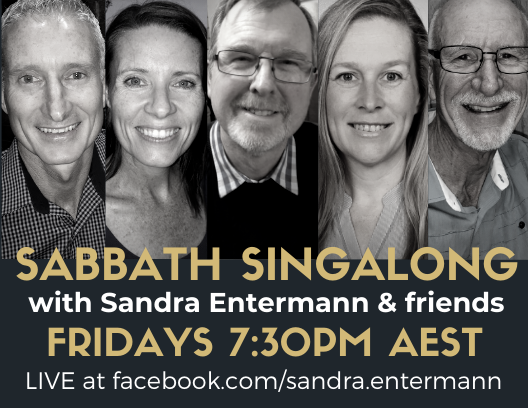 WELCOME SABBATH SINGALONG Jackie and I welcome Sabbath with Sandra Entermann and friends from Australia. She started streaming her Friday evening family vespers. And she's still going strong attracting viewers from around the world. You can search and find her latest episode on YouTube and Facebook. Happy Sabbath! |